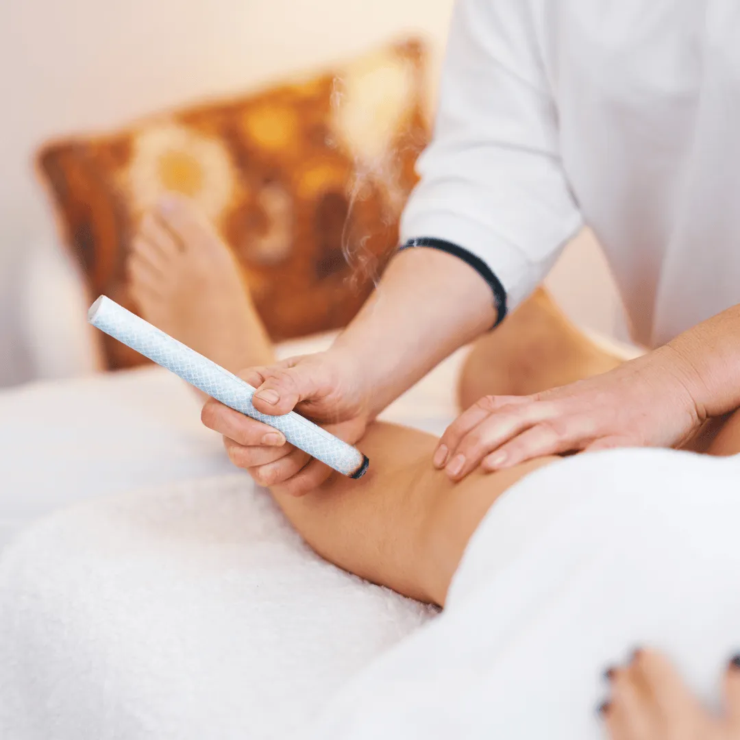 Our Moxa Heat & Gua Sha Therapy combines gentle moxibustion warmth with the therapeutic power of Gua Sha to release deep tension, improve circulation, and clear stagnation.